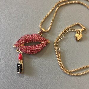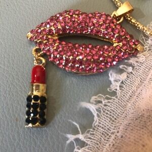 Betsey Johnson Sexy Pink Lips Lipstick Pendant Necklace