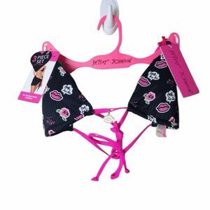 BETSEY JOHNSON 3 piece tie bikini Set Pink Black New