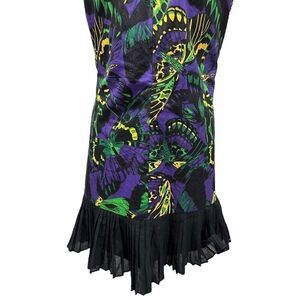 Betsey Johnson butterfly sleeveless trapeze dress. Flapper style sheer pleated chiffon hem. Hidden back zip closure. Fully lined. Lightened areas in purple around arm area as pictured. Gently used condition.