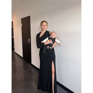 BETSY & ADAM Asymmetric Single Long Sleeve Gown in Black Size US 2