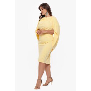 BETSY & ADAM Jordan Cape Sleeve Crepe Sheath Dress in Yellow Size US 8