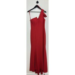 BETSY & ADAM Paulina Cutout One Shoulder Floor Length Gown in Red Size US 14