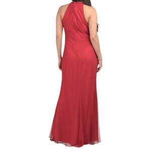 BETSY & ADAM Red Mesh Gown With Halter Neck