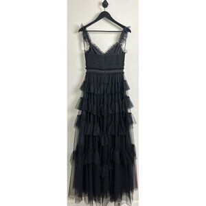 BETSY & ADAM Tiered Ruffle Tulle Gown in Black Size US 4