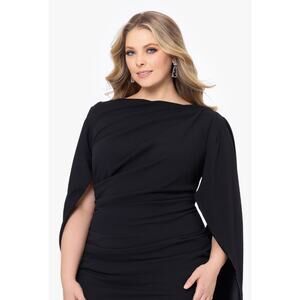 BETSY & ADAM Women's Jordan Short Scuba Crepe Dress 14W Black Drape Back NWT