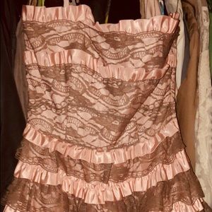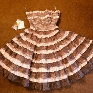 NWT BETSY JOHNSON DRESS. GORGEOUS DRESS. 🌺 DETAILS ء✅FITTED FROM WAIST TO BUST. FLATTERING FLUFFY BELOW THE WAIST. COLOR IS LACE TAN AND ALMOST ROSE GOLD PINK/PINK/LACE PART IS AS SHOWN IN PICTURES