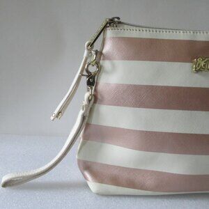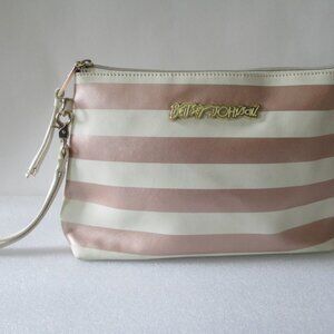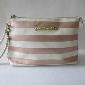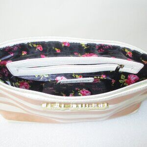 Designed with multiple inside pockets and a wristlet strap, you can carry this as a purse, travel bag or jumbo make-up bag.