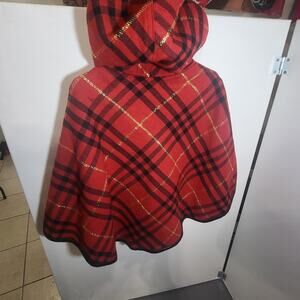 BETSY JOHNSON girls size 6, red plaid hooded cape. Little red riding hood style.