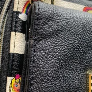 Some flaws in front by stitches and one on strap. pls see up close pictures.
