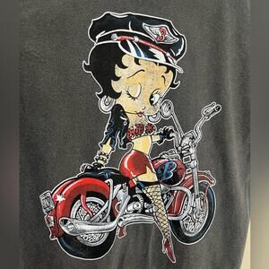 BETTY BOOP Motorcycle Distressed Black Short Sleeve Crew Neck T-Shirt Size XS/S
