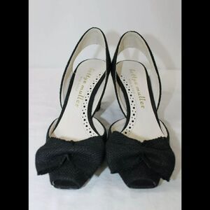 BETTYE MULLER PEEP TOE BLACK CANVAS BOW SLINGBACK PUMPS SIZE 35.5 US SZ 5