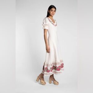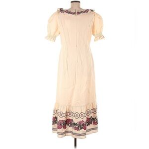 BEULAH LONDON 100% Linen Embroidered Modest Romantic Feminine Dress Size US8 NWT