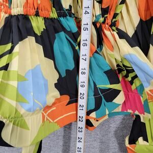 Floral print pleated long sleeve mock neck blouse with peplum style. Size All, pre-owned in amazing used condition.