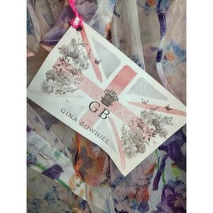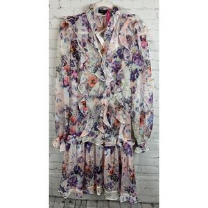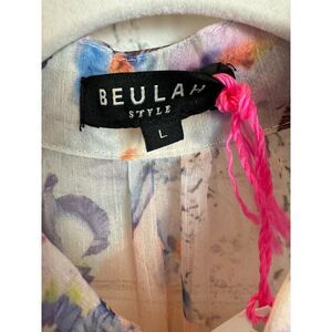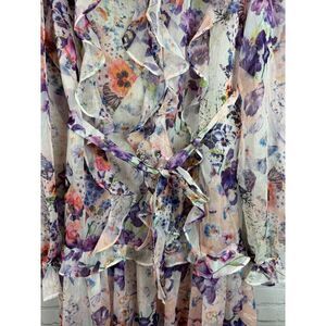 BEULAH STYLE cotton blend chiffon frill floral semi sheer shift belt dress L NWT