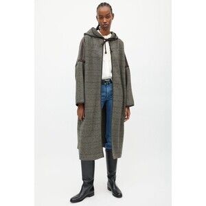 BEULAH Style Women Cotton-Blend Open Front Hooded Coat Brown One Size