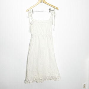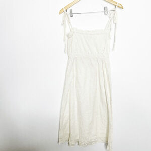 BEULAH lace tie shoulder midi dress cream white sleeveless coquette womens L