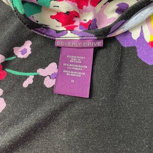 BEVERLY DRIVE SHORT SLEEVE PULLOVER TUNIC TOP Black Pink Red Floral PRINT 1X