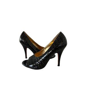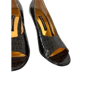 BEVERLY FELDMAN Patent Leather Snake Print Heels Size 7