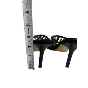 Elegant Beverly Feldman sandals with rhinestone embellishments and a black satin finish. Perfect for special occasions or a night out. These jeweled heels in size 9 offer both style and comfort.