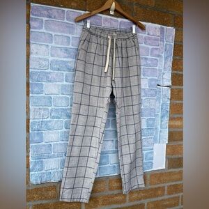 Drawstring Waist cotton wool linen blend. Colors are blue gray cream shades , very high end fabric.