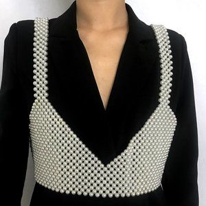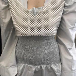 BEVZA Faux Pearl Crop Top XS