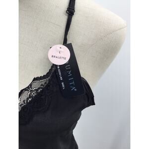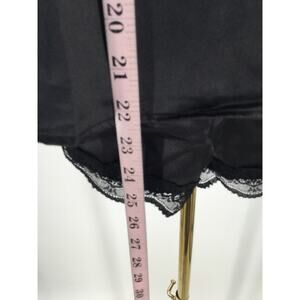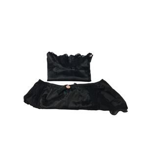 BEWICKED SZ L black satin lace trim cami 2 piece short sleep pajama set NWT 0B1