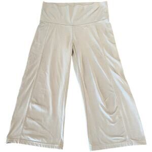 BEYOND YOGA Fold Over Waist Wide Leg Cropped Leggings L Gray Workout Gym Comfy