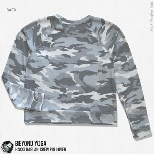 BEYOND YOGA HACCI FAVORITE RAGLAN CREWNECK SWEATSHIRT IN GRAY CAMO XS PULLOVER