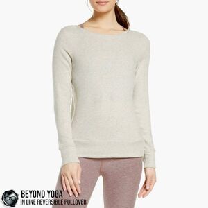 Beyond Yoga In Line Reversible Ribbed Pullover In Oatmeal Heather
