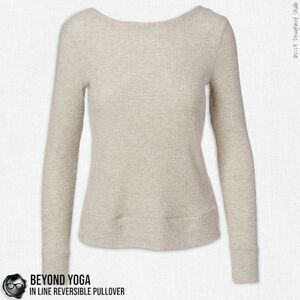 BEYOND YOGA IN LINE REVERSIBLE RIBBED SWEATER OATMEAL HEATER CRISSCROSS STRAPS