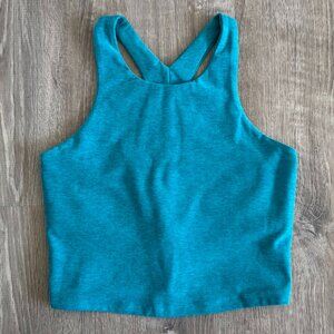BEYOND YOGA Spacedye Focus Cropped Tank Top | Peacock Blue Heather | Size Small