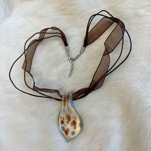 BEautiful Blue Brown Dot Dichroic Fused Glass Pendant 19" Necklace 12532