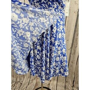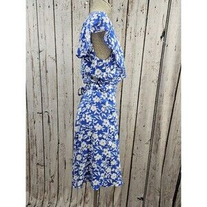 BF Women's Large Draper James RSVP Blue Futter Sleeve Tie Waist Wrap Dress NWT