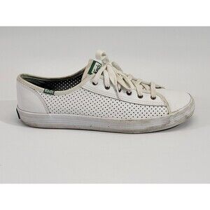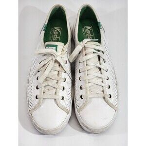 Women's size 9 KEDS sneakersWhite pierced leather upperWhite lacesMan made solesGreat preowned condition with surface wear as you'd expect from use. Please see photos for details.