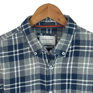 BF1214 Men’s Denim & Flower SLIM Fit Plaid Flannel Button Down Shirt L