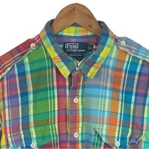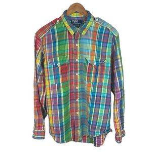 BF1455 Vintage Men’s Polo Ralph Lauren Designer TRIM Military Epaulette Uniform Shirt XL