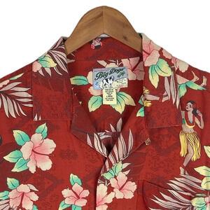 BF271 Mens Authentic BIG DOGS Brand Hawaii Hula Girl Floral Rayon Button Shirt L