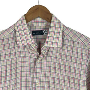 BF466 Mens Saks Fifth Avenue 100% LINEN Preppy Plaid Button Down Shirt 15.5 M