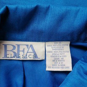 BFA Classics Womens Blue Embroidered Beaded Floral Button Up Shirt Size 2X