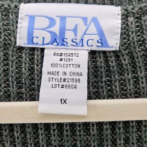 BFA Classics Womens Sweater Green Size 1X 100% Cotton Button Close Long Sleeve