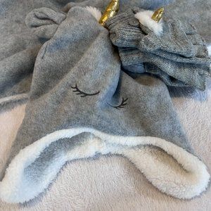 Keep your little one warm and fashionable with this 3-piece winter set from BFNY. The set includes a scarf, gloves, and hat all with gold unicorn details in a gray color. The set is one size and fits most toddlers. Easy to clean and maintain with machine washable fabric. Made from durable materials to withstand the elements with features including the cold and wind. Perfect outfit for any outing in the fall and winter seasons.