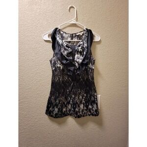 BG BCBGeneration Women’s Size X-Small Black Gray Blouse Ruffled Sleeveless.