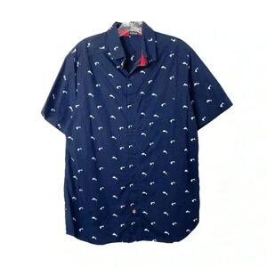BG Blue Gear Slim Fit Blue Stretch Everyday Sharks Button Down Shirt