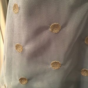 Worn once. Size 4. Light blue chiffon material with sewn silver polka dots. Very flattering and comfortable dress.