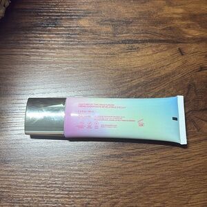Light-reflecting moisturizer in a pink to blue gradient tube. Vegan and cruelty-free formula.