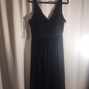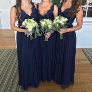 Tulle maxi dress is a unique option for your best gals! Removable grosgrain sash Back zip Nylon tulle; lace, polyester lining Bust cups and boning Runs true to size!