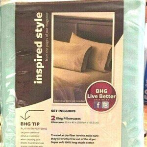 BHG 2 King Pillowcases Aqua Reef #300TC 300 Thread Count In One Zippered Bag New