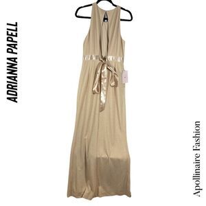 BHLD BY ADRIANNA PAPELL METALLIC SLEEVELESS MAXI DRESS GOLD THREADS NWT SIZE 12