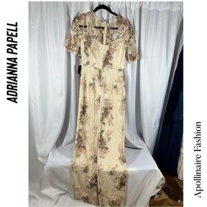 BHLD BY ADRIANNA PAPELL SHEER SHORT SLEEVE GOWN ROSE EMBROIDERED IN MINK NWT SIZE 6