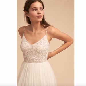 NWT BHLDN Adrianna Papell Violetta wedding dress. Ivory. An artfully beaded bodice, finished with whisper-thin spaghetti straps, is paired with an airy tulle skirt. Back zip Polyester; polyester lining Professionally clean Imported.